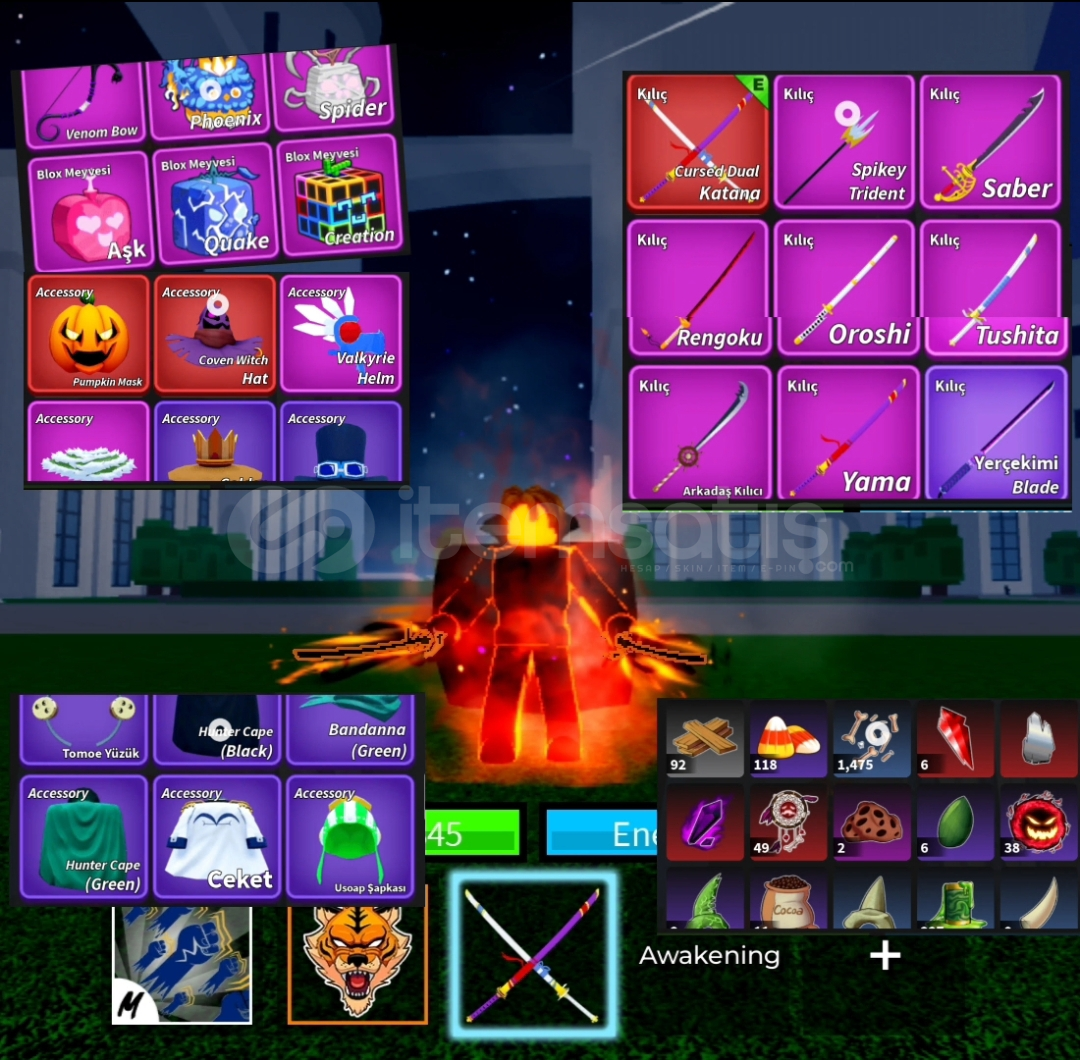 Hesap Gorseldeki GibidirHUMAN V4+Tiger+CDK+GODHUMAN✅HUMAN V4✅Max Leveldir.✅Aktif Olarak TİGER Fruit Kullanıyor✅God Human Vardır.✅Dough King Kesilmiştir.✅Rip İndra Kesilmiştir.Sorusu Olan Yazsin