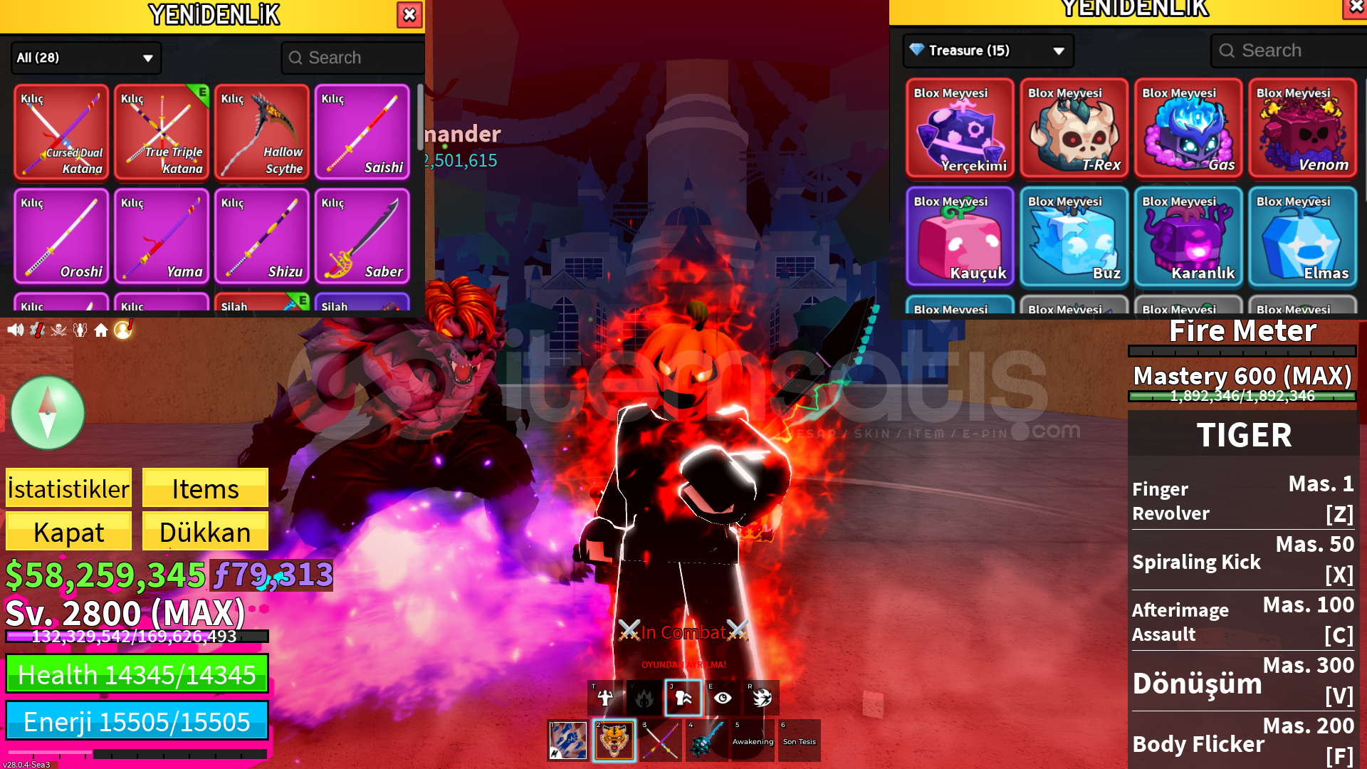 ÜRÜN RESİMDEKİ İLE BİREBİR AYNI ÖZELLİKLERE AYNI İTEMLERE SAHİPTİR✅HUMAN V4+TİGER MAX+TTK+CDK+SGT+GH✅CURSED DUALKATANA✅TRUE TRİPLE KATANA✅HALLOW SYTCHE✅Hesapta HUMAN V4✅Max Leveldir.✅Aktif Olarak TİGER Fruit Kullanıyor✅God Human Vardır.✅Dough King Kesilmiştir.✅Rip İndra Kesilmiştir.✅Hesapta Gmail Bağı Yoktur Hesabı Sa...