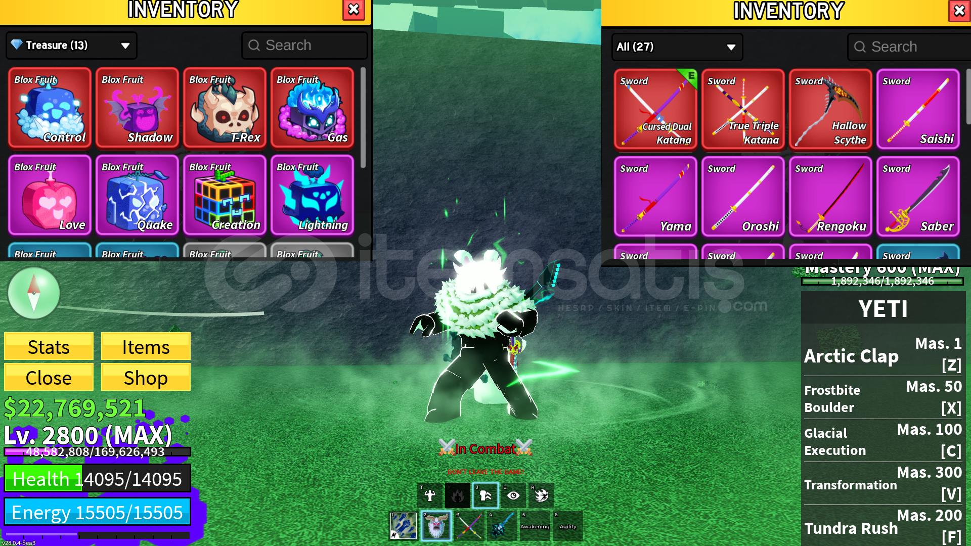 ✅HUMAN V4+YETİ MAX+TTK+CDK+SGT+GH ✅CURSED DUALKATANA✅TRUE TRİPLE KATANA✅HALLOW SYTCHE✅Hesapta HUMAN V4✅Max Leveldir.✅Aktif Olarak YETİ Fruit Kullanıyor✅God Human Vardır.✅Dough King Kesilmiştir.✅Rip İndra Kesilmiştir.✅Hesapta Gmail Bağı Yoktur Hesabı Satın Aldığınızda Kullanıcı Adı ve Şifre Olarak Gelir.✅Hesaba Giriş ...