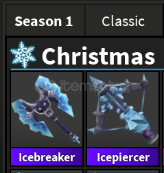 MM2 oyununda sınırsız kullanabilirsiniz envanterinizden silinmez.Icebreaker, Icepiercer içerir.İtemSet olarak satılmaktadır.Kılıç ve silah.MM2Murder