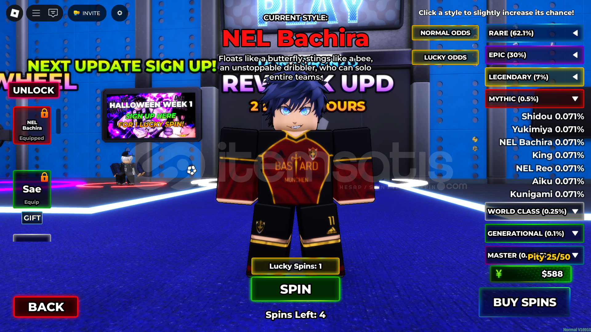 Ink Game Doctor'lu hesap. Blue Lock Rivals 3 Style Slot Nel Bachira, Nel Isagi, Sae bulunmaktadır. Azuer Latch Yeni Yukimiya ve Kunigami harici bütün style lar mevcuttur.