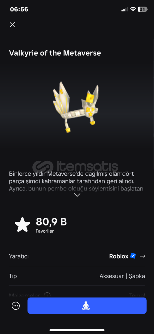 Bu hesaba toplam nerden bakılırsa 70 ila 80k arası robux harcanmıştır gercekten alıcak kişiyi asla pişman etmeyeceğine eminim. hesapta hem kiz hemde erkek ürünleri bulunmakta hesapta korblox var. onemli olucak hesaptaki değerli eşyalar metaverse tamamlanmış versiyon gercektende nadir bir item hesap sorunsuz sekilde mail devri yapılır asla ama asla. geri cekme işlemi olmaz.! telefonda girerken. bazi sat...