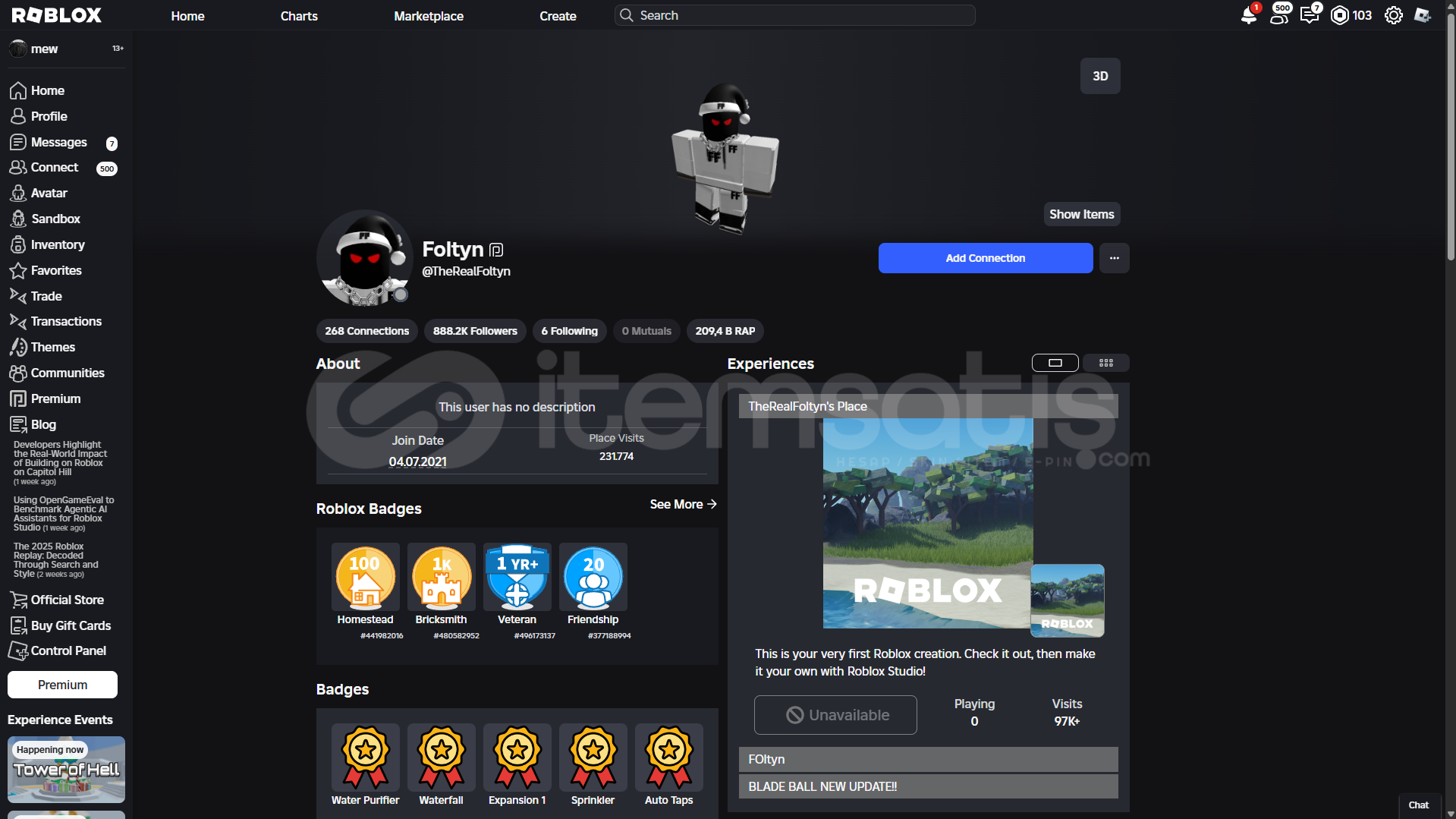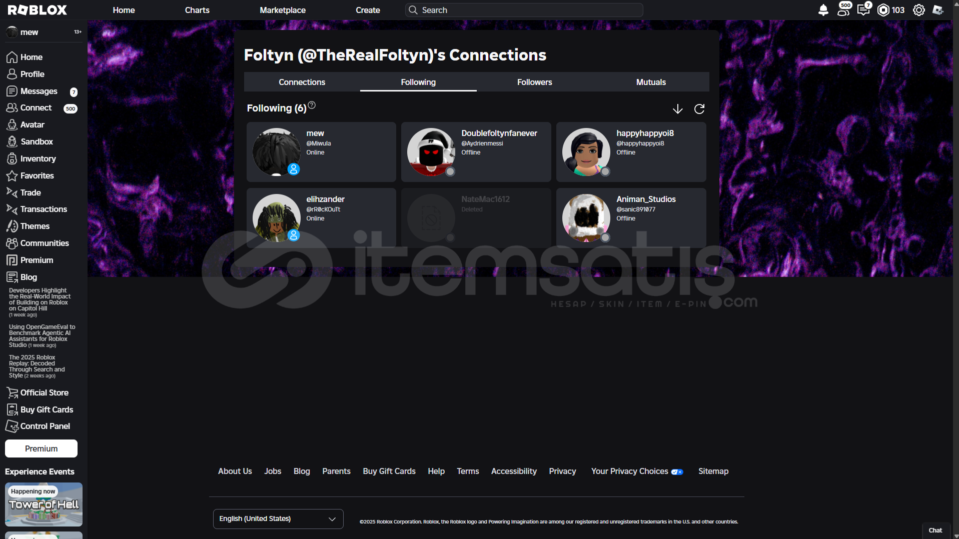 Youtube'da 9m aboneli kanal olan Foltyn'in roblox hesabı takip ediyor. Joinleri açmayın sürekli birileri joinleniyor foltyn takip ettiği için :DDD