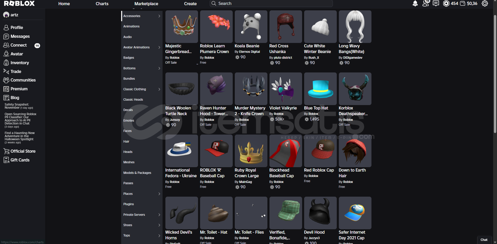 Hesapta Korblox Vardır +17K RobuxHesapta Valkyrie Vardır +50K RobuxHesapta Big Sad Eyes Vardır +1K RobuxHesapta 7 Adet Animasyon VardırHesap Mainlemelik Hesaptır.BONUS:Hesapta +300K Robuxluk Trade Vardır (Hesabı Gösteriş Olarak İyi Tutar)NOT:Hesabın Premiumu Dün Çekilmiştir. İçinde 454 Robux Bulunmaktadır.