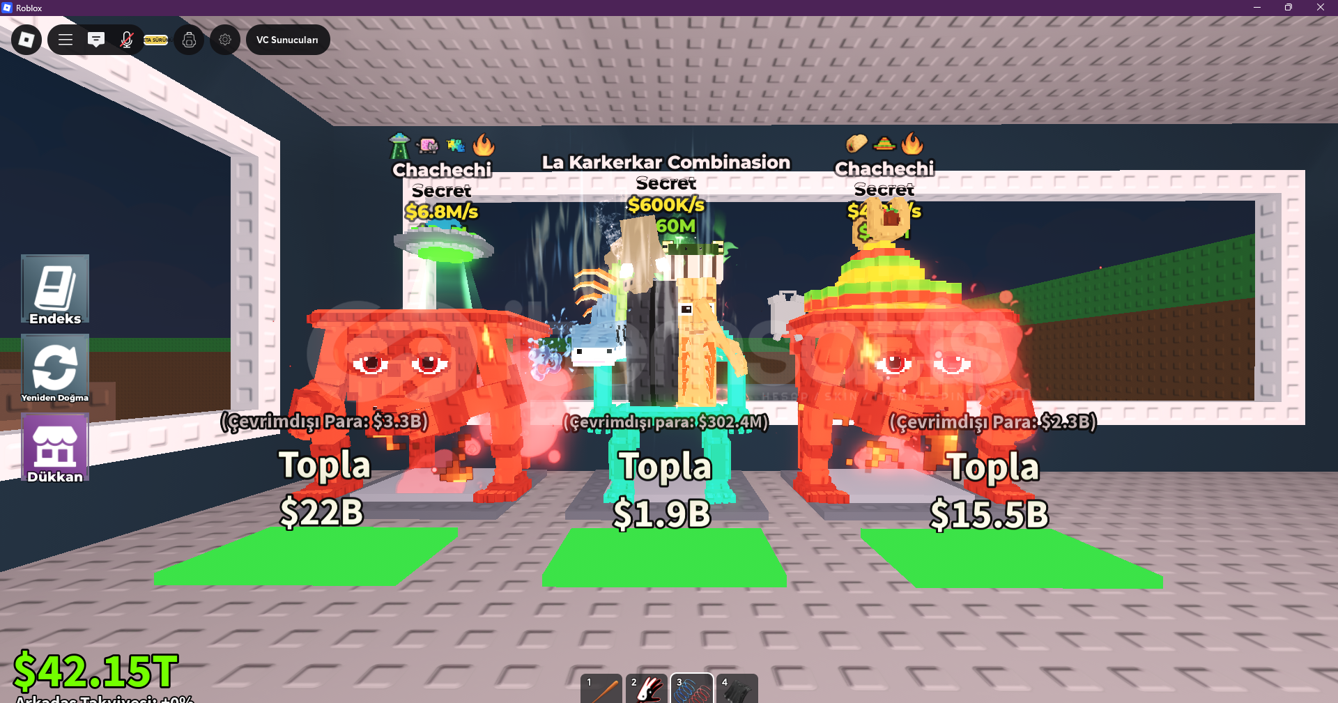 La Karkerkar Combinasion Ve 2li Chachechi  cok ucuza baya mutasyonlu masa takımı robux karşılıgıda verilir pazarlık vardır