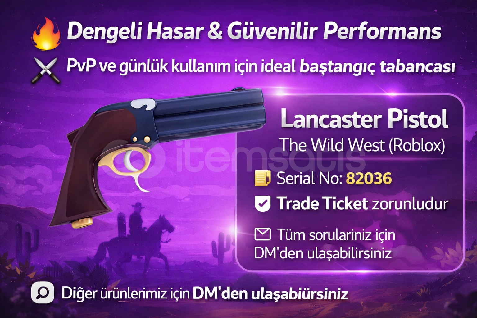 🔥 Dengeli Hasar & Güvenilir Performans ⚔️ PvP ve günlük kullanım için ideal başlangıç tabancası🔫 Lancaster Pistol – The Wild West (Roblox) 🔢 Serial No: 82036📄 Trade Ticket zorunludur📬 Tüm sorularınız için DM’den ulaşabilirsiniz 🔎 Diğer ürünlerimiz için profilimizi ziyaret edebilirsiniz