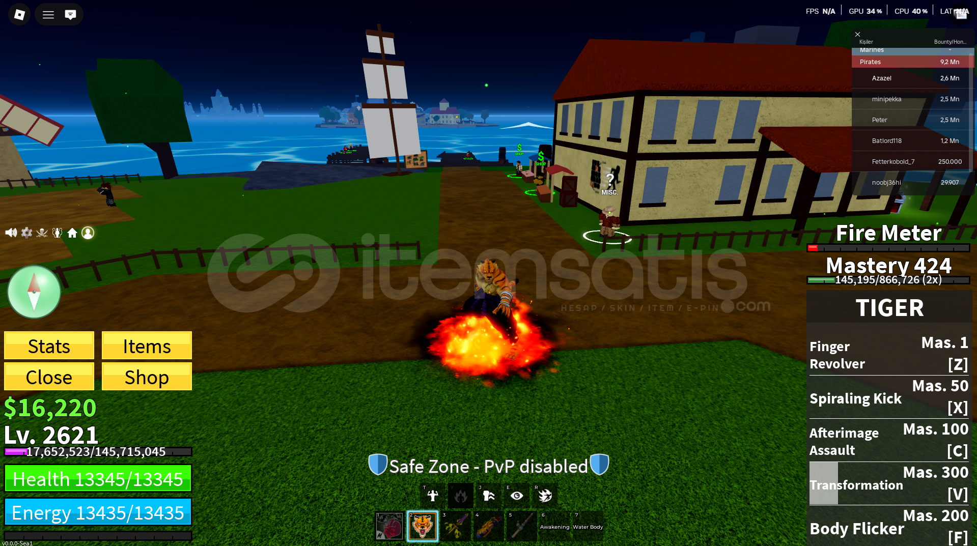 🔥 HESAP FULL+FULL DURUMDADIR 🔥🎯 Hesapta Bulunan Perm MeyvelerDoughLeopardBuddhaIceSpringRocket⚡ Mevcut Gamepass’lerDark Blade2x Money2x MasteryFruit Notifier2x Drop ChanceFast Boat+4 Storage⚔️ Hesaptaki Bıçaklar / SilahlarCursed Dual KatanaDark BladeTrue Triple KatanaHallow ScytheShark AnchorVe daha fazlası…🐉 IrklarDragon V3 (V4 olmasına çok az kalmıştır)Diğer tüm ırklar V4&...