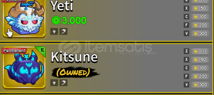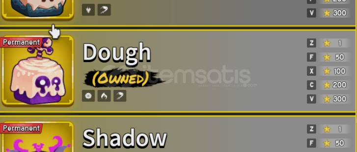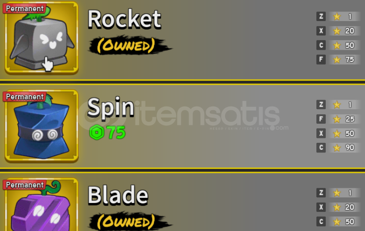 • Envanter / oyun durumu: [perm meyveler + 10dan fazla skin + all figthing styles]