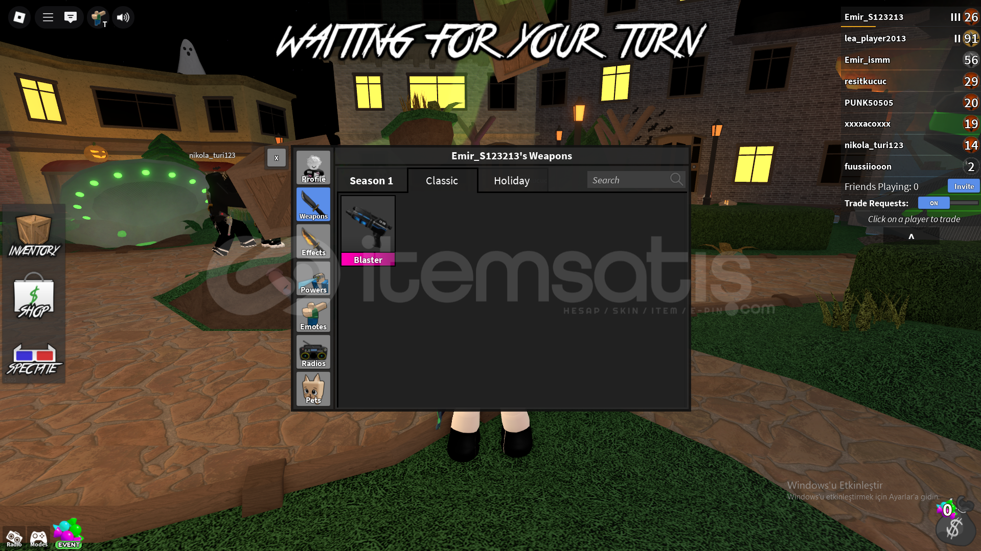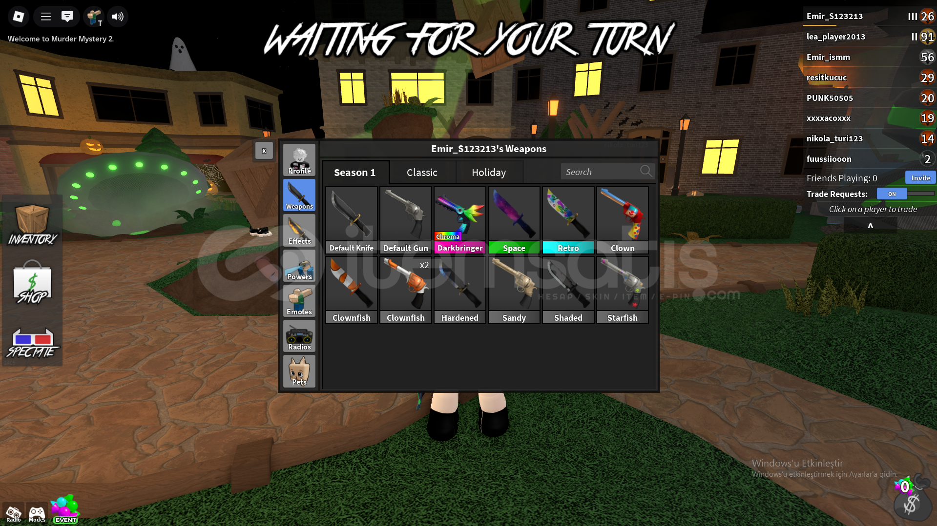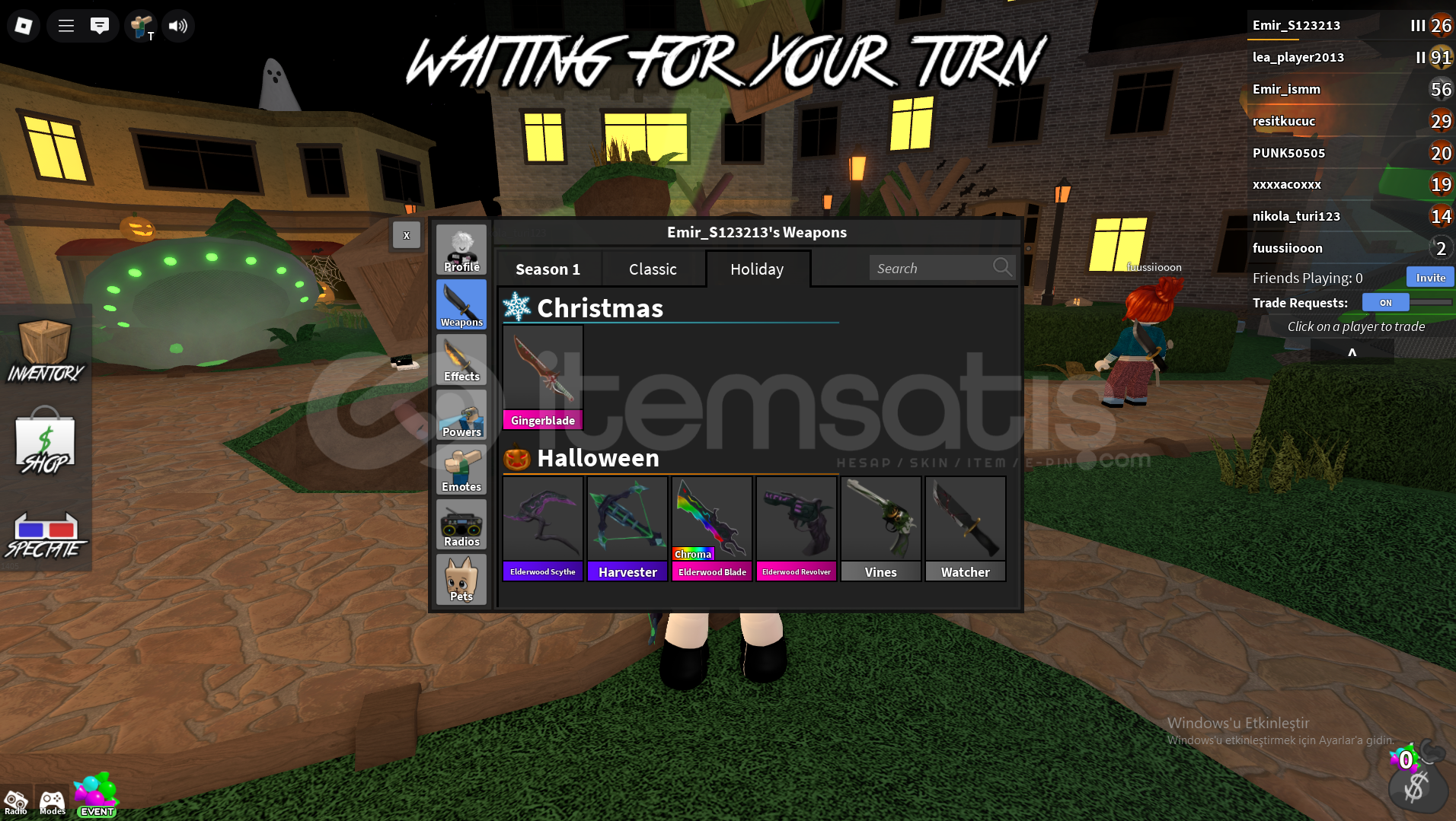 Hesapta Olanlar:1x Chroma Darkbringer1x Blaster1x Harvester1x Gingerblade1x Chroma Elderwoodblade1x Elderwood Revolver1x Elderwood Scythe