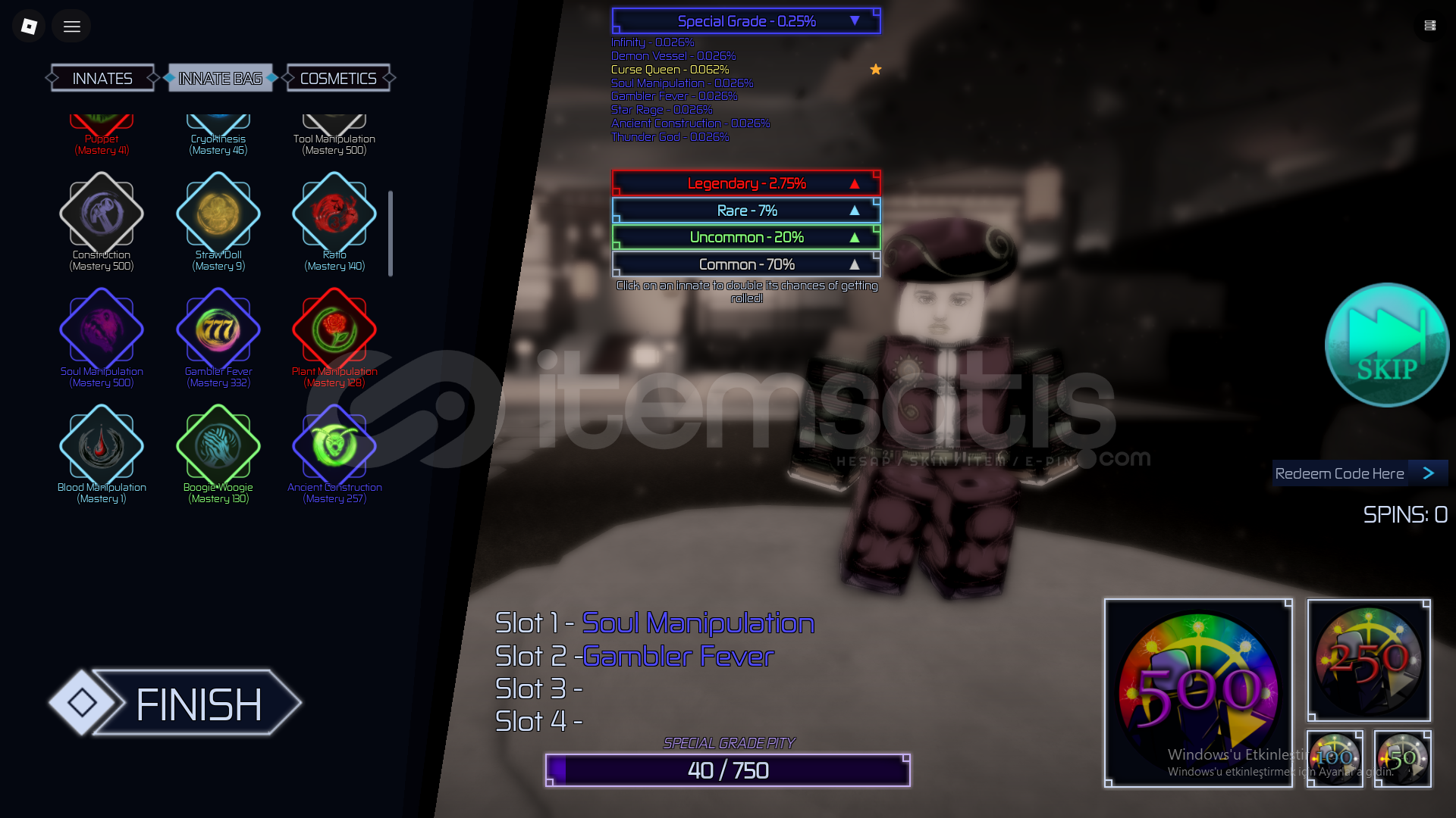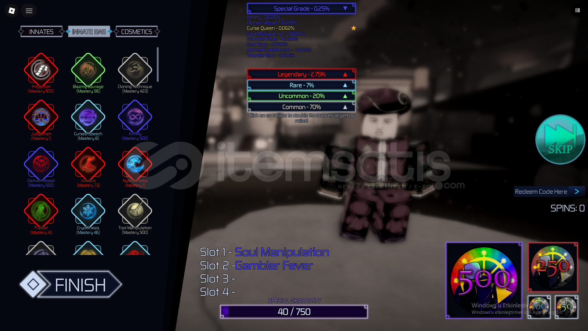 hesabın icerisindeicerisinde 5k robux harcanmıstırtsb deki cogu gamepassler vardırjjs de early access vardırjji de innate bag vardır special gradelerin cogu vardır gojo mahito naoya domaini vardır westbound kasılmıstır ve 2 adet gamepass set vardır