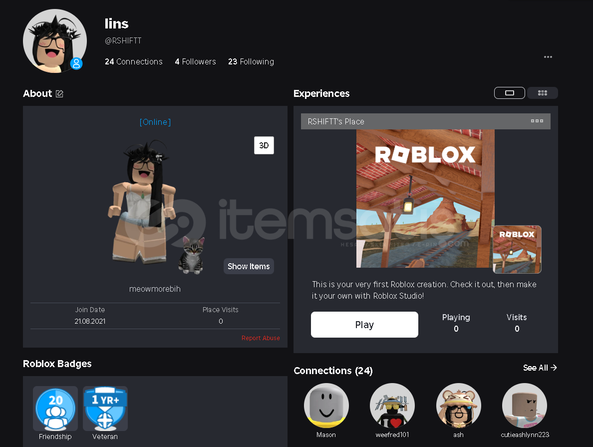 Hesabı erkeklerde kullanabilir birçok erkek item vardır ama main olarak kızdır-PAZARLIK YAPILIR-EN GÜVENİLİR ŞEKİLDE TESLİM EDİLİR-İTEMSATIŞ GÜVENCESİYLE-Hesabın ismi RSHIFTT ogdir-7200 total robux harcanmıştır(Hesapta 153 Robux Bulunmakta)