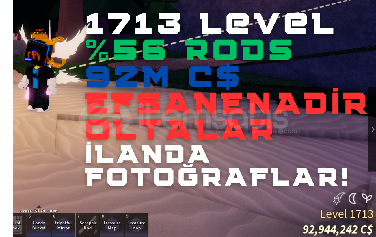 🔥 Bu fırsatı kaçırmayın! 🚀💨Hesap şunları içerir:🚀 Seviye 1713🎣 Rods %56 İlan görsellerinde bulunan oltalardan çok daha fazlası hesapta var.💰 93 Milyon $CHesabın E posta ve numarası doğrulanmamıştır. Hesabı siz kendi e posta ve numaranıza ekleyebilirsiniz.⚠ Önemli Uyarı ⚠ Roblox'un yeni politikası gere&#...