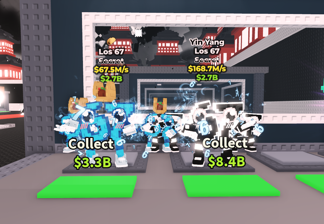 steal a brainrot oyunundaki 1 tane saniyede 168m/s veren Los 67 bir tane de saniyede 67m/s veren los 67