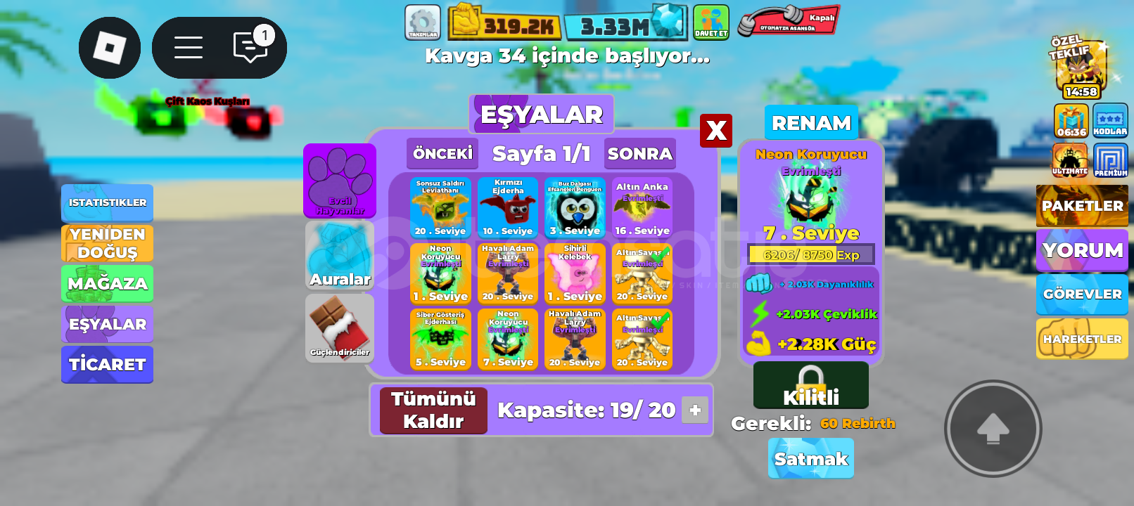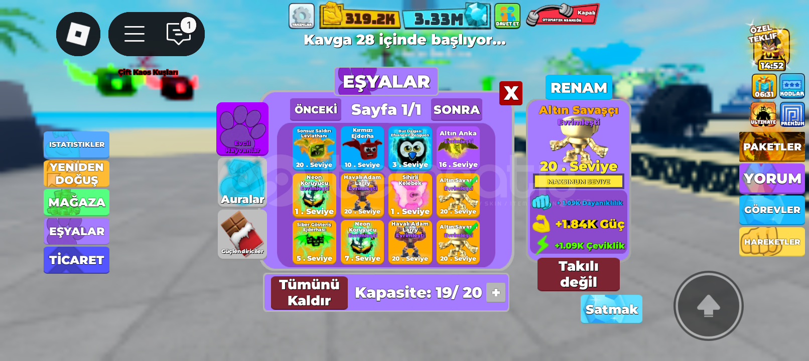 Neon koruyucu ve altın savaşçı pet'i oyuna girip traden verilecektir hızlı teslim edilir alaçaksaniz lütfen bana yazın şimdiden hayırlı olsun