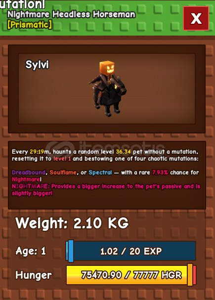 NİGHTMARE HEADLESS HORSEMAN Satışıdır. GROW A GARDEN oyunudur.