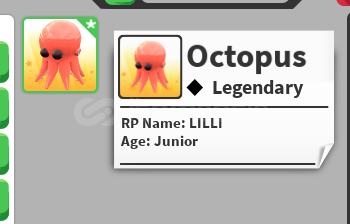 Adopt Me oyununda Octopus,Oyun içi trade ile teslim edilir,Diğer ilanlarıma da göz atmayı unutmayınız.