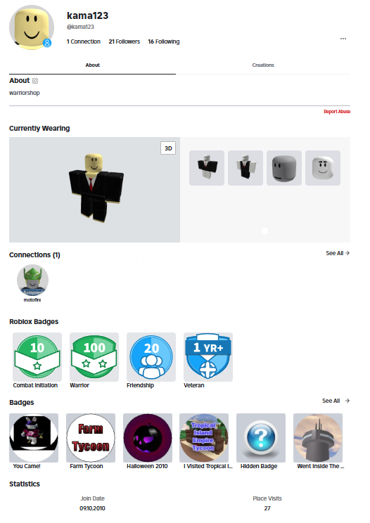 2018'Den beri düzenli oyun geliştiren bir insanım roblox düzenli oynuyorum 7 yıldır. Sitedeki en kaliteli hesap çıktı içinde eski doğrulama ile verilen hediye ve 3400 Robuxluk Limited Şapka çıktı. Teşekkürler warriorshop!