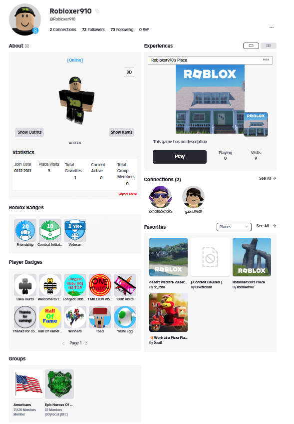 2018'Den beri düzenli oyun geliştiren bir insanım roblox düzenli oynuyorum 7 yıldır. Sitedeki en kaliteli hesap çıktı içinde eski doğrulama ile verilen hediye ve 3400 Robuxluk Limited Şapka çıktı. Teşekkürler warriorshop!