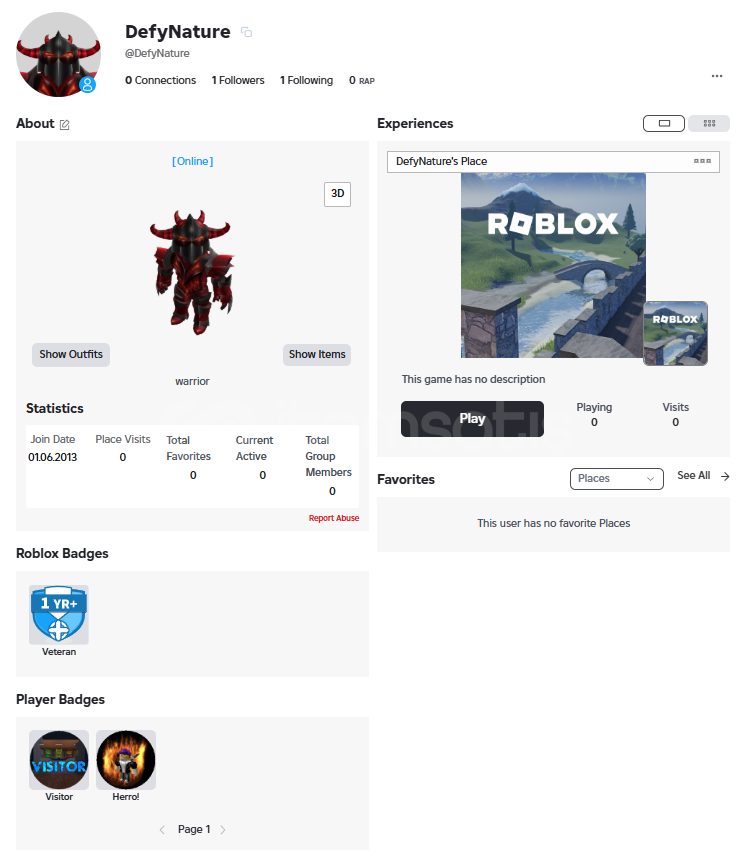 2018'Den beri düzenli oyun geliştiren bir insanım roblox düzenli oynuyorum 7 yıldır. Sitedeki en kaliteli hesap çıktı içinde eski doğrulama ile verilen hediye ve 3400 Robuxluk Limited Şapka çıktı. Teşekkürler warriorshop!