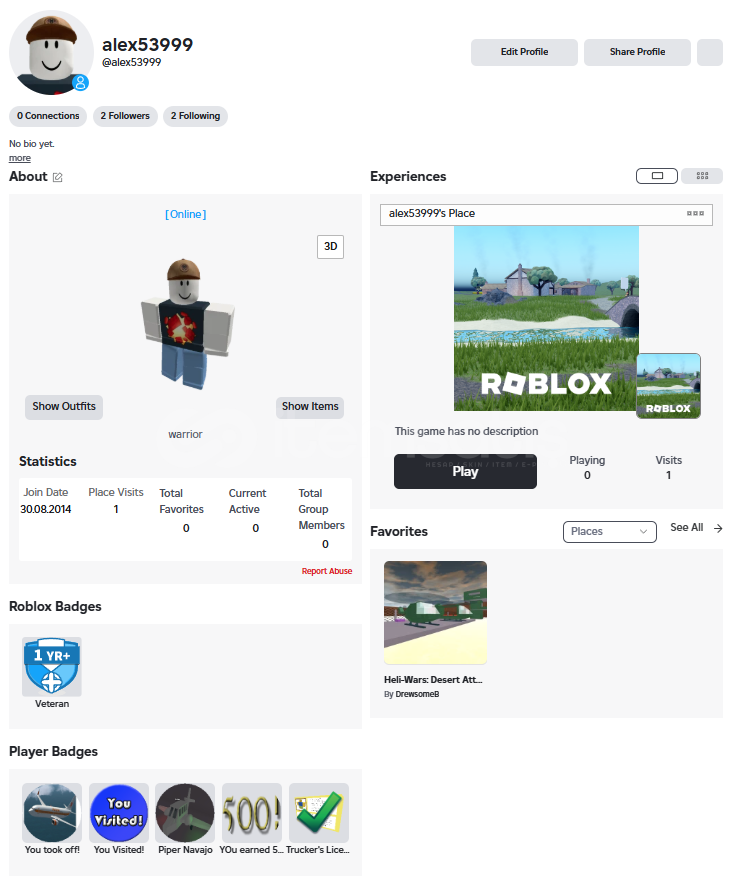 2018'Den beri düzenli oyun geliştiren bir insanım roblox düzenli oynuyorum 7 yıldır. Sitedeki en kaliteli hesap çıktı içinde eski doğrulama ile verilen hediye ve 3400 Robuxluk Limited Şapka çıktı. Teşekkürler warriorshop!