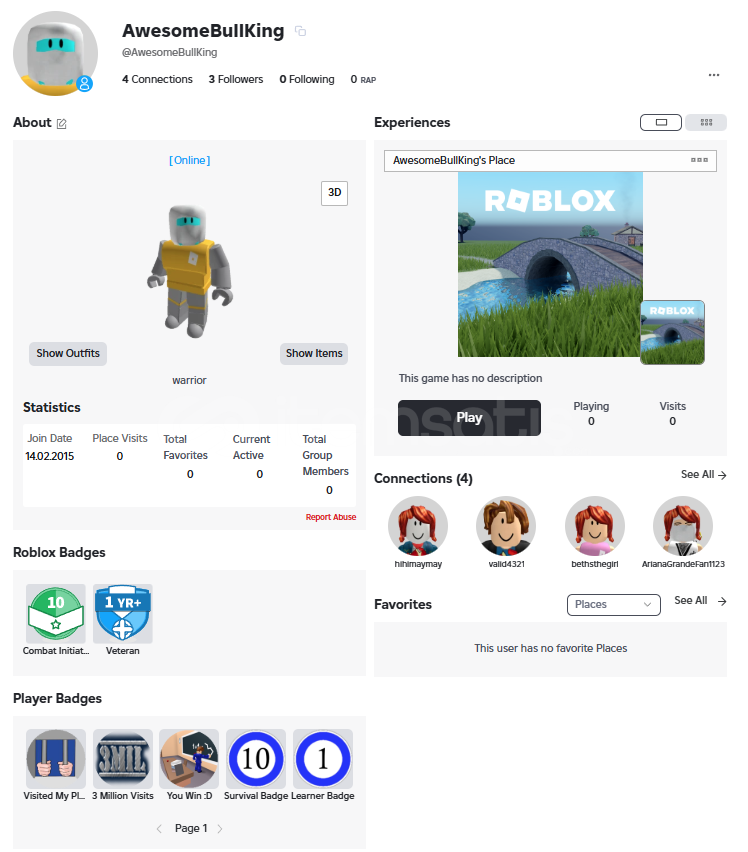 2018'Den beri düzenli oyun geliştiren bir insanım roblox düzenli oynuyorum 7 yıldır. Sitedeki en kaliteli hesap çıktı içinde eski doğrulama ile verilen hediye ve 3400 Robuxluk Limited Şapka çıktı. Teşekkürler warriorshop!