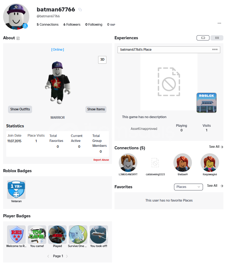 2018'Den beri düzenli oyun geliştiren bir insanım roblox düzenli oynuyorum 7 yıldır. Sitedeki en kaliteli hesap çıktı içinde eski doğrulama ile verilen hediye ve 3400 Robuxluk Limited Şapka çıktı. Teşekkürler warriorshop!