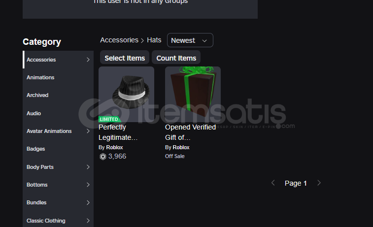 • Hesapta 4500 Robux değerinde Perfectly legitimate business hat vardır