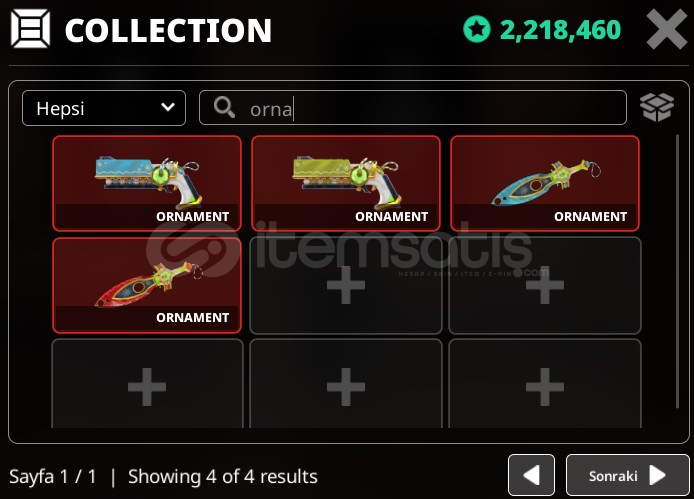 Hepsinden birer adet vardır oyunun nadir eski itemidir.