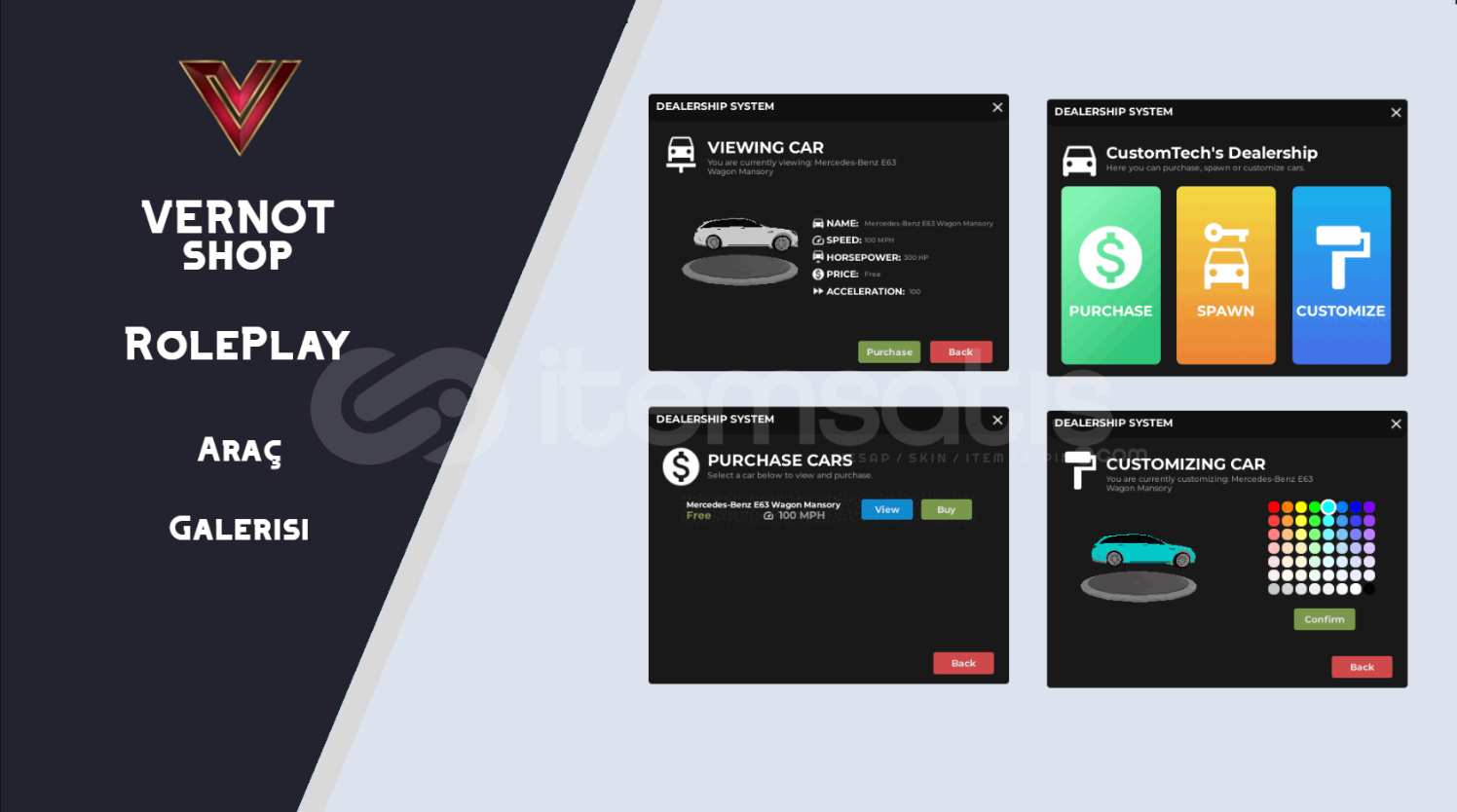 🏁 Profesyonel Yönetim: Araç satışlarını ve spawn sistemini düzenli, esnek ve oyununa özel hale getir!