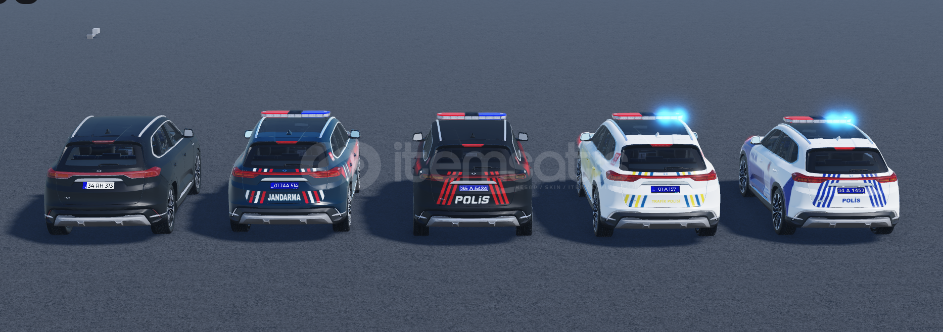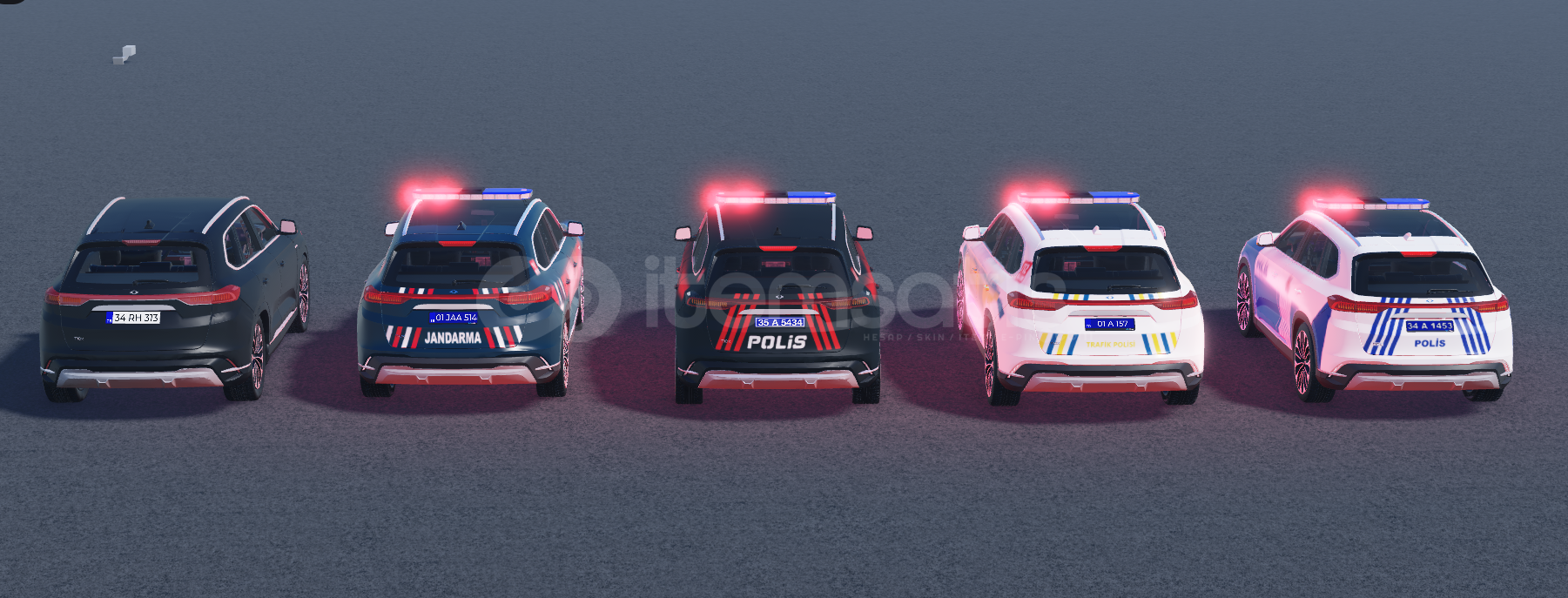 ⭐ [PACK] TOGG ARAÇ PAKETİ ⭐Bu pakette toplam 5 adet TOGG araç bulunmaktadır. Roleplay ve sunucu kullanımı için özel olarak hazırlanmıştır.📦 Paket İçeriği: 🚓 1x Asayiş TOGG 🚨 1x Trafik TOGG 🏍️ 1x Yunus TOGG 🛡️ 1x Jandarma TOGG 🚗 1x Sivil TOGG ✅ Detaylı ve temiz tasarım ✅ Roleplay uyumlu ✅ Performans sorunu y...
