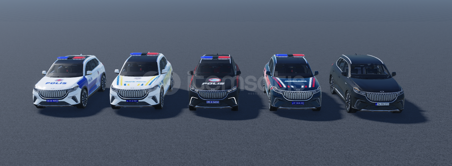 Bu pakette toplam 5 adet TOGG araç bulunmaktadır. Roleplay ve sunucu kullanımı için özel olarak hazırlanmıştır.