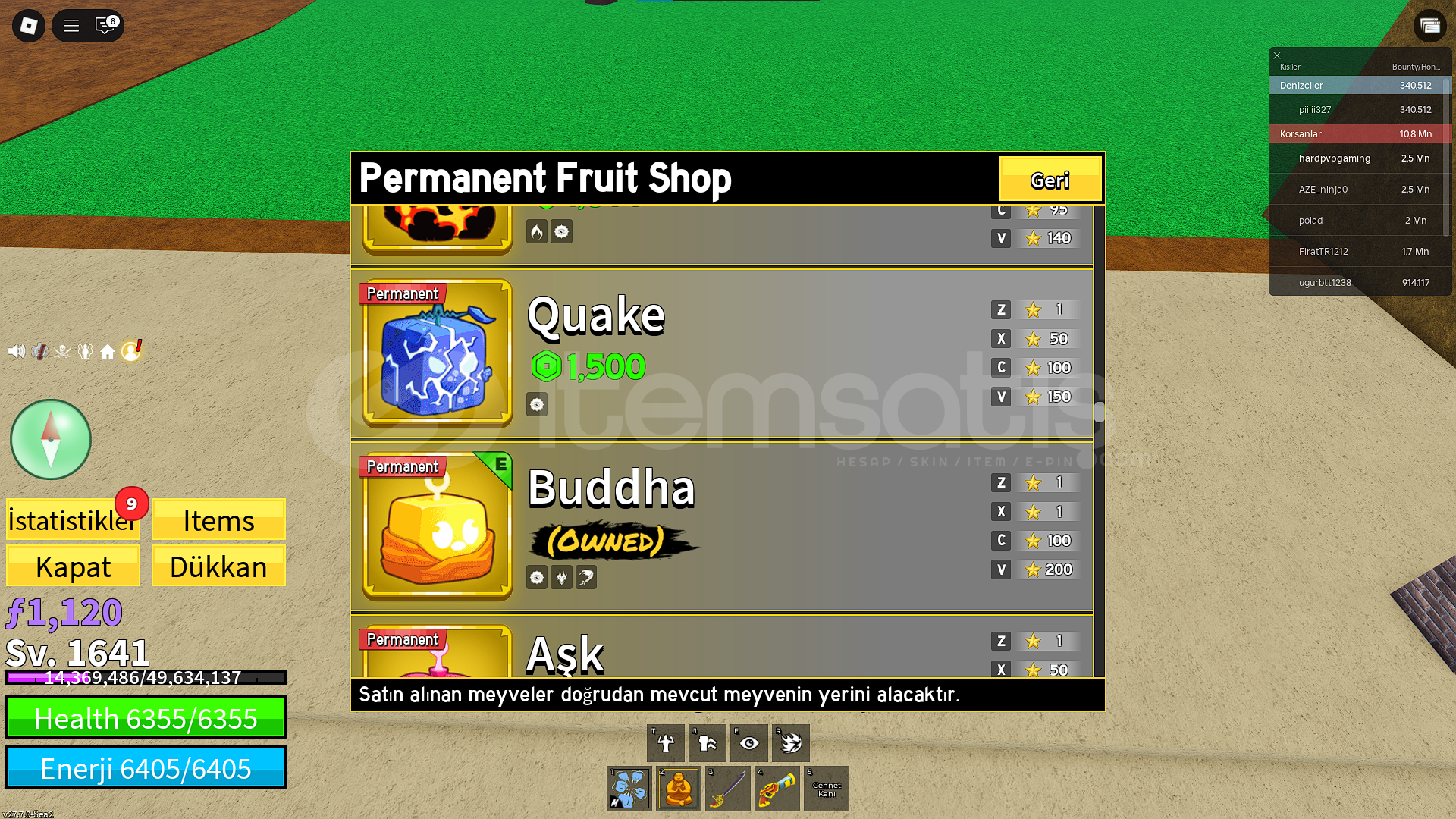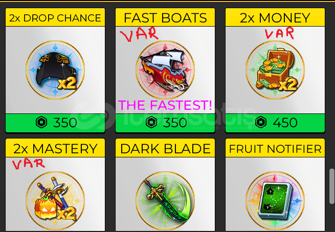 • Hesapta Fast Boats, 2x Money, 2x Mastery gamepassları vardır.