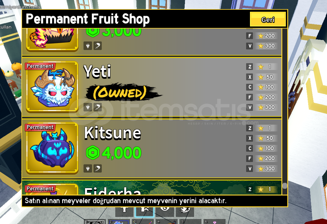 ÖNCELİKLE MERHABALAR .HESAP İÇERİĞİNİ SİZLERLE PAYLAŞMAM GEREKİRSE ŞÖYLEDİR HESAPTA +3 STROAGE BASILMIŞTIPERM YETİ ACTİVE EDİLMİŞTİRPERM ROKETTE VARDIRYENMİŞ MEYVE GASDIRMARİNES VE PİRATESDE 3M BOUNTYSİ VARDIRTÜM GAMEPASSLAR MEVCUTTURHESAPTA 2 ADET DOUGH FRİT BULUNMAKTADIRCYBORG V4 TÜRDRACO V3GHOUL V3KISACA TÜM RACELER V3 DÜRALAN Kİ#...