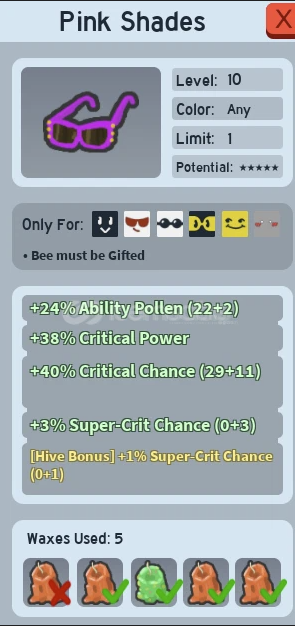 Kovanınızın gücünü zirveye taşımak için ihtiyacınız olan o özel ekipman burada! Hem Red Hive hem de White Hive dizilimleri için vazgeçilmez olan bu Beequip, polen toplama veriminizi ve bal kazancınızı ciddi oranda artırır.
