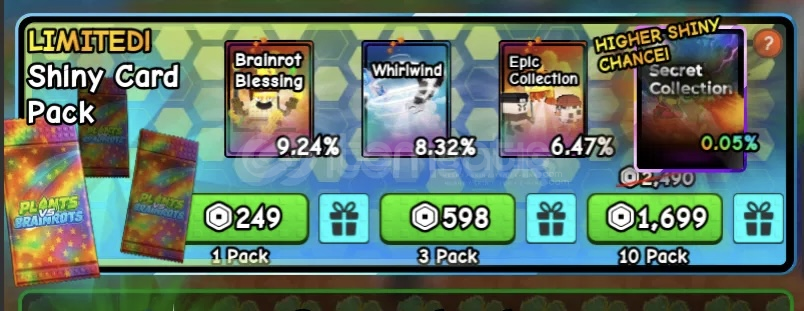 PLANTS VS BRAINROTS 3 SHINY CARD PACK