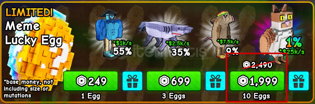 Plants Vs Brainrots Meme Lucky 10 Egg [LIMITED]