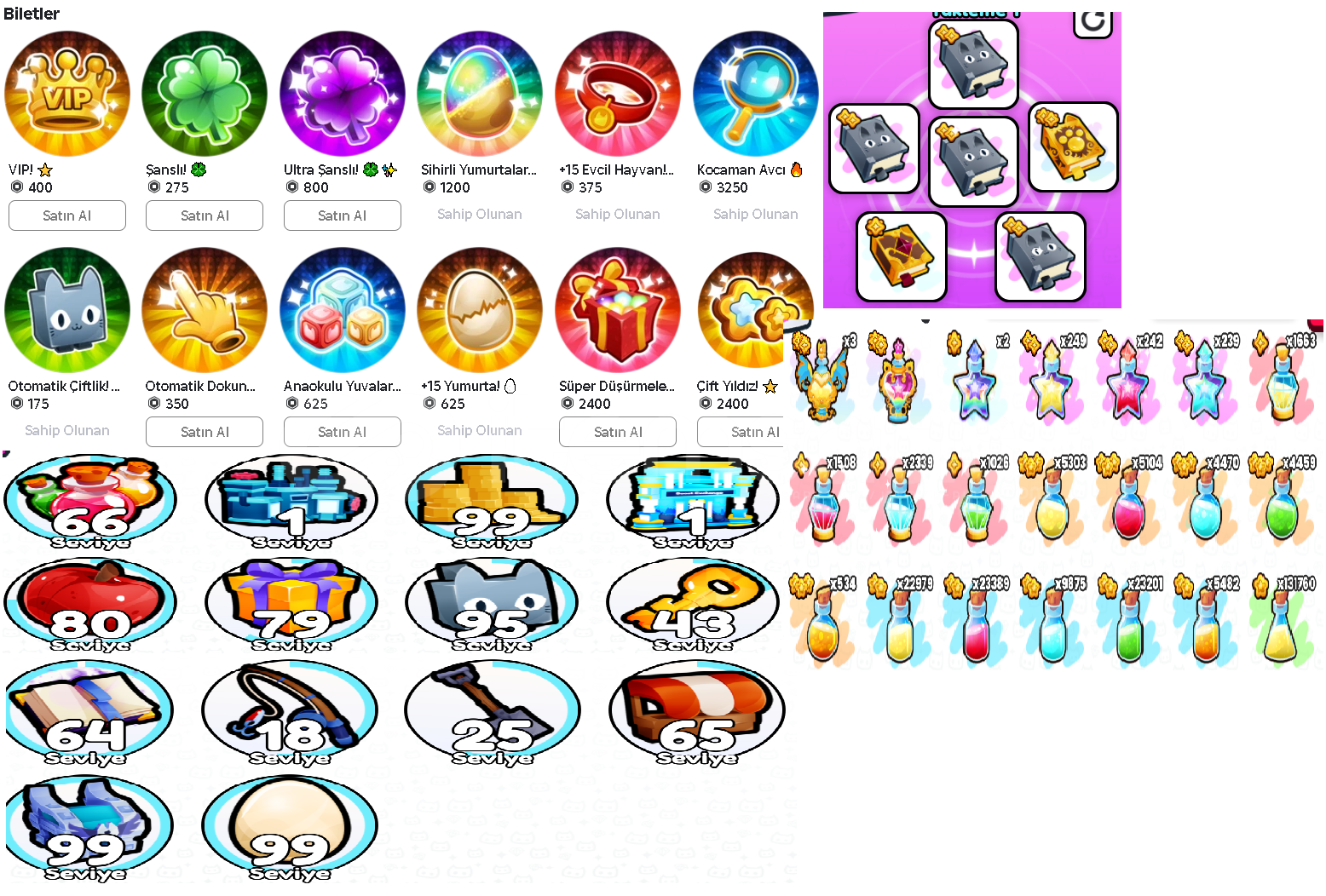 Pet simulator 99Hesap içeriği:34 MAX RANK eşi benzeri yoktur.5625 robux yatırılmıştır.İÇERİK GÖRSELDEKİ GİBİDİR SATIN ALMADAN ÖNCE MESAJ ATINIZ5625 ROBUX YATIRILMIŞTIR GÖRSELDEKİ HERŞEY EKSİKSİZ VARDIR.!!!OYUNCANAVARI GÜVENCESİYLE.