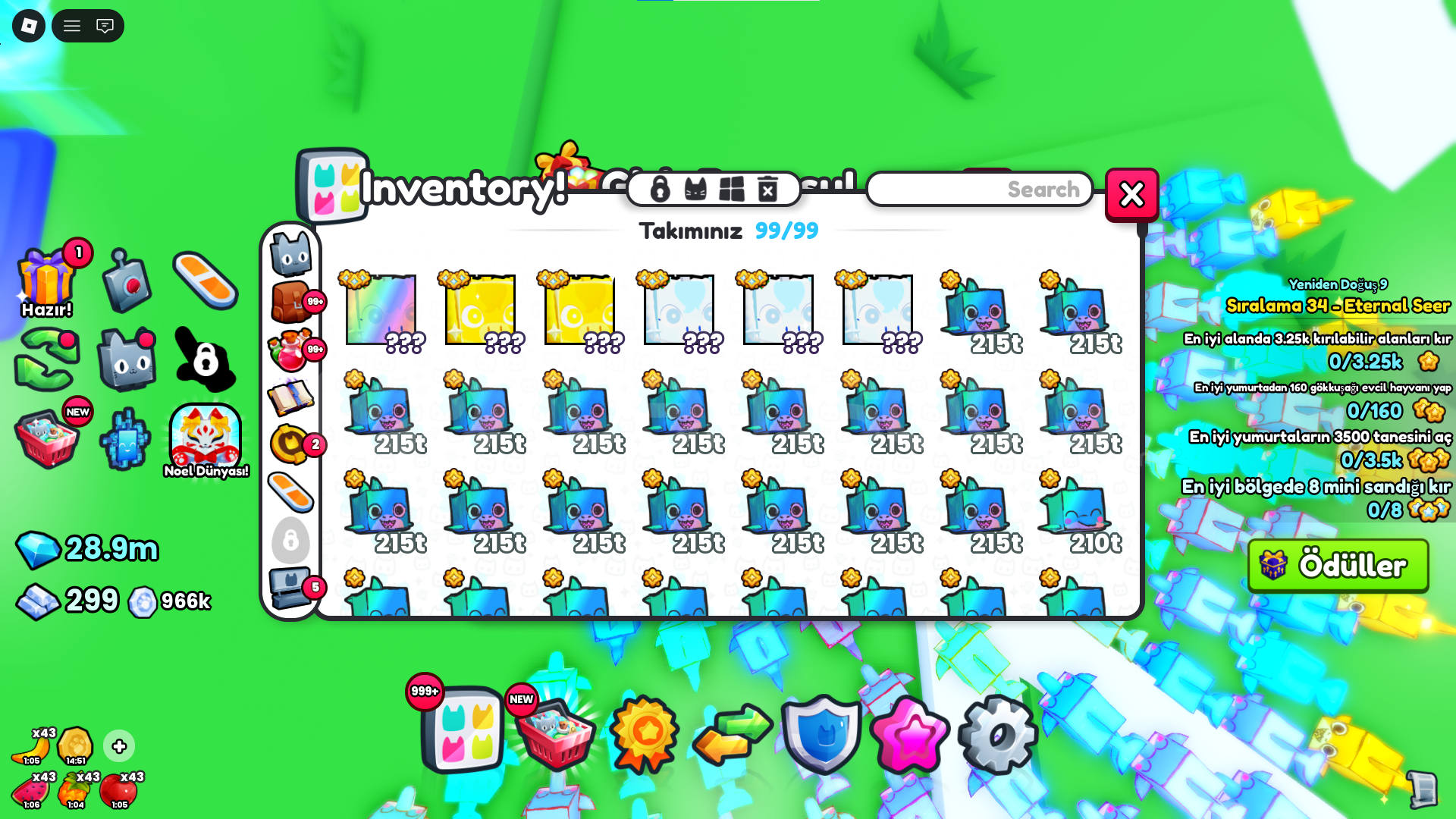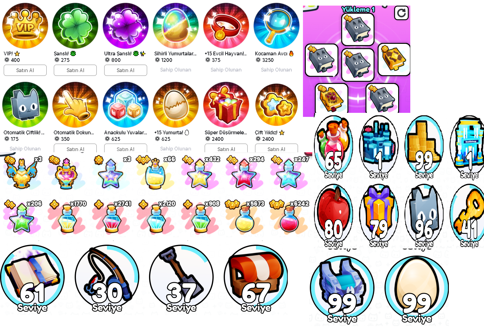 Pet simulator 99Hesap içeriği:34 MAX RANK eşi benzeri yoktur.5625 robux yatırılmıştır.İÇERİK GÖRSELDEKİ GİBİDİR SATIN ALMADAN ÖNCE MESAJ ATINIZ5625 ROBUX YATIRILMIŞTIR GÖRSELDEKİ HERŞEY EKSİKSİZ VARDIR.!!!OYUNCANAVARI GÜVENCESİYLE.