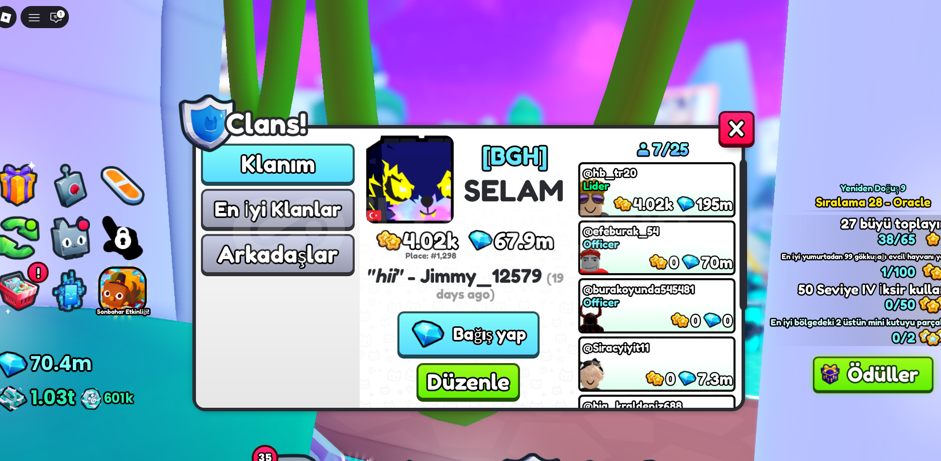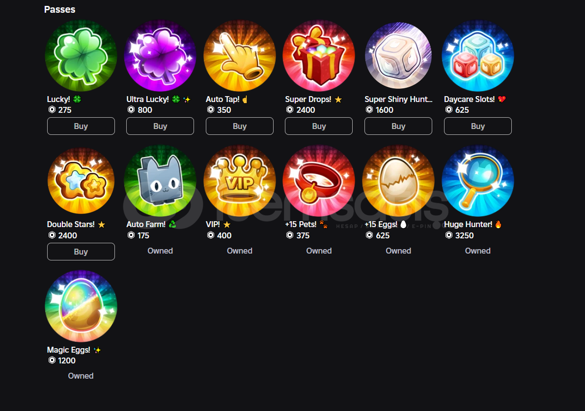 HESAP İHTİYAÇTAN UCUZ FİYATA SATILIYORDUR!!!HesaptaHuge Hunter Gamepassi 3250 Robux Değerinde!!!Magic Eggs 1200 Robux Değerinde!!!Vip 400 Robux Değerinde!!!Auto Farm 175 Robux Değerinde!!!Ekstra 15 li egg açma ve 15 li pet takma ikisi 1000 Robux Değerinde!!!Hesapta bütün adalar açıktır ve hesabın leveli 28 dir!!!Ekstra 2 Tane Kitap slotu alınmıştı 1000 Robux DeğerindeHESABIN KENDİN...