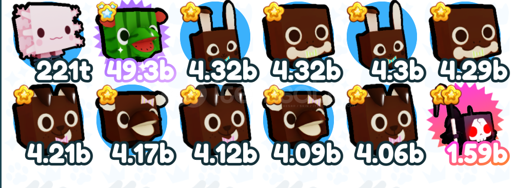 TEKLİF İLANIDIR SATIN ALMAYINIZ!!!!MEVCUT OLAN PETLER:GOLDEN HUGE HELL ROCKARCADE DOGCUPCAKE UNİCORNBASKETBALLTİKİ DOMİNUSCLOVER AXOLOTLPARTY DOGPARTY AXOLOTLSAFARİHİPPOMELONCHOCOLATE HİPPOCHOCOLATE DOGCHOCOLATE BUNNYCHOCOLATE FROGCLOVER FAİRY