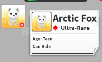 Adopt Me oyununda R Arctic Fox,Oyun içi trade ile teslim edilir,Diğer ilanlarıma da göz atmayı unutmayınız.