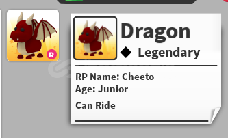 Adopt Me oyununda R Dragon,Oyun içi trade ile teslim edilir,Diğer ilanlarıma da göz atmayı unutmayınız.