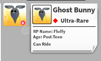 Adopt Me oyununda R Ghost Bunny,Oyun içi trade ile teslim edilir,Diğer ilanlarıma da göz atmayı unutmayınız.