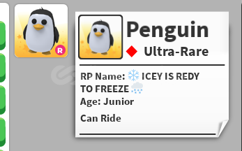 Adopt Me oyununda R Penguin,Oyun içi trade ile teslim edilir,Diğer ilanlarıma da göz atmayı unutmayınız.
