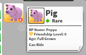 Adopt Me oyununda R Pig,Oyun içi trade ile teslim edilir,Diğer ilanlarıma da göz atmayı unutmayınız.