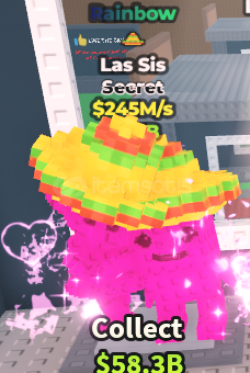 -oyunda saniyede 245M para veren secret enderliğindeki nadir secretlardan Rainbow Las Sis satılıktır.1 adet efekti vardır.1 adet stok