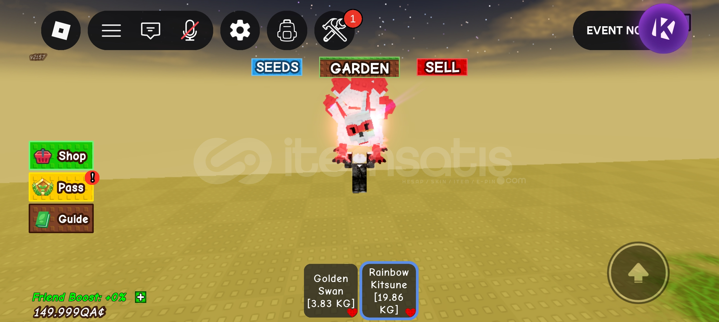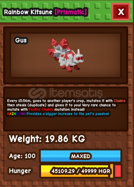 Pazarlık olur. Grow A Garden Oyunundaki "Rainbow Kitsune" Petidir.Satın alırsanız 3 Dakika içinde, Mesaj yazarsanız 1 Saat içinde cevaplarım.