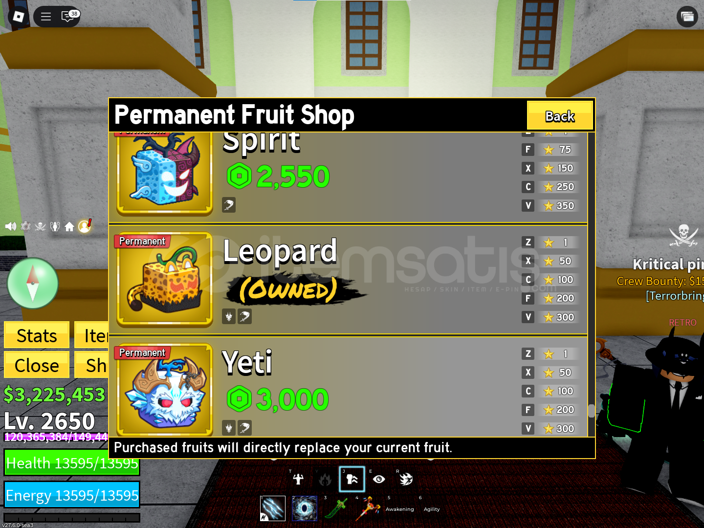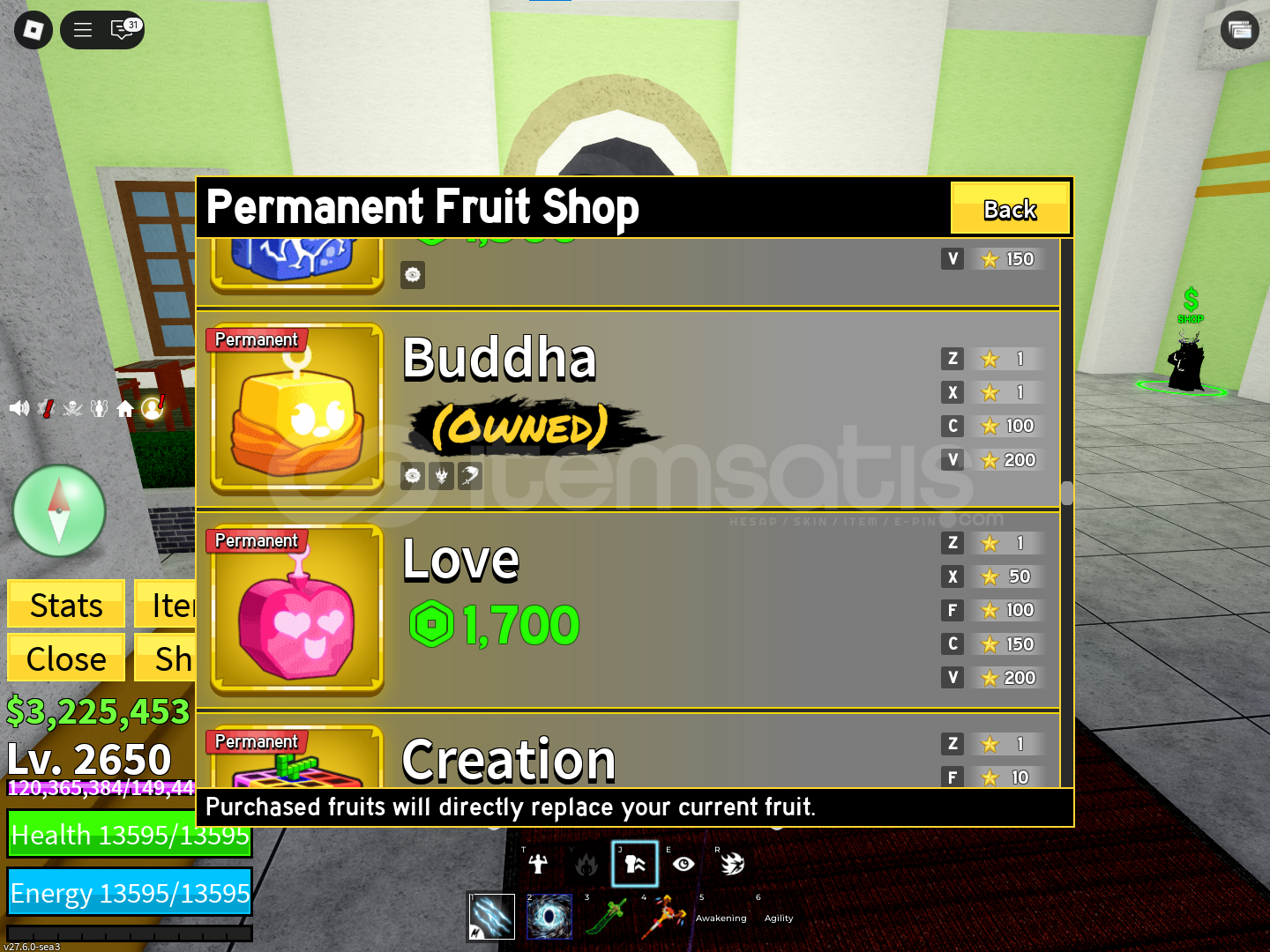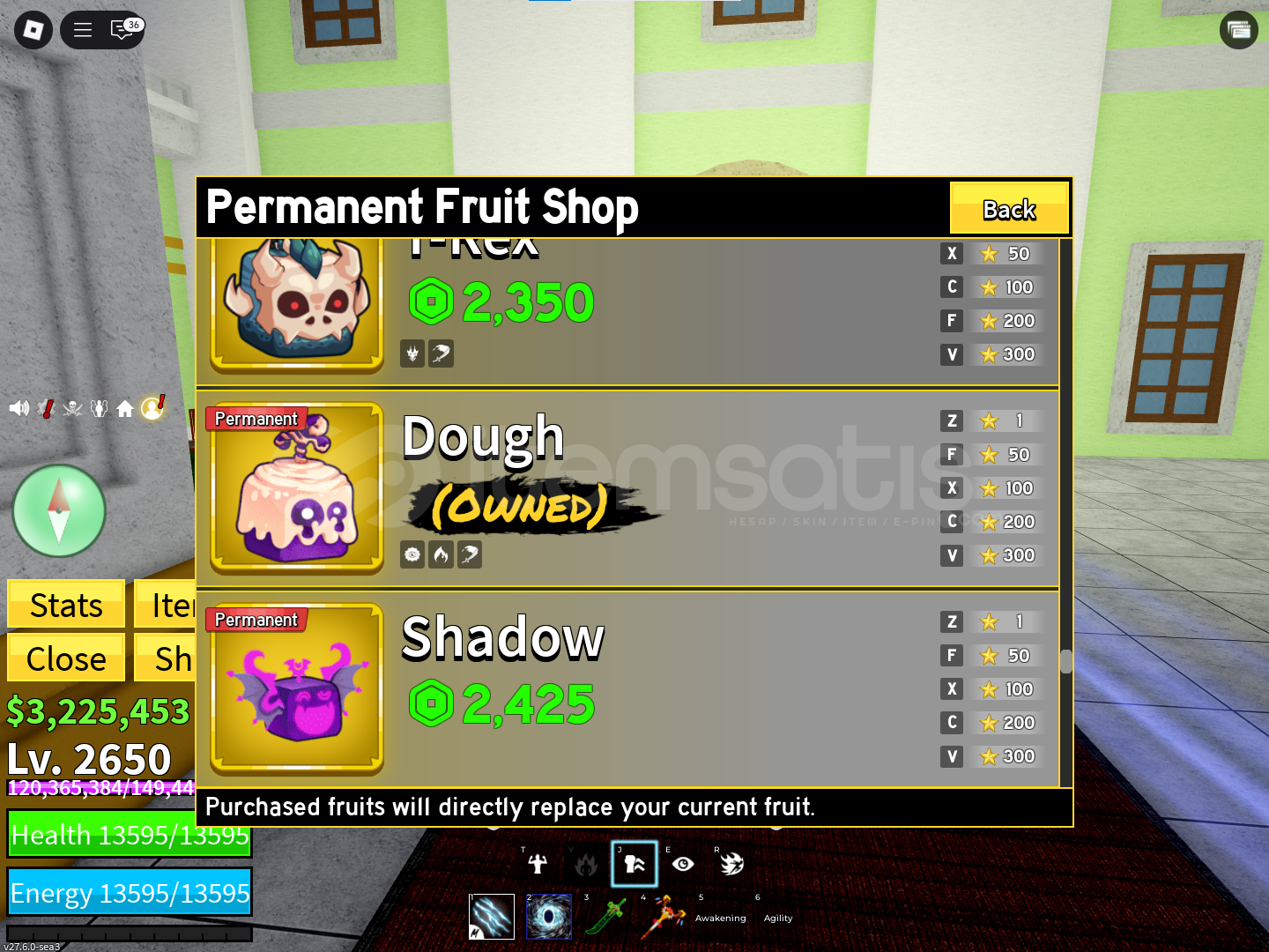 hesapta permament portal,buddha,leopard ve dough vardırhesapta 2x money, 2x mastery, fast boats,dark blade bulunur.True Triple Katana(TTK), Cursed Dual katana(CDK) vardır.hesapta unuttuğum daha cok sey var 3.225.453 para vardırKitsune aurası ve Rainbow Saviour vardırneredeyse tüm ırklar v4.statları fruite basılı ama degistirebilirsinizhesabı alınca bana bildirim geliyosaat Öğleden sonra 4 gibi aktifim okuldan o zaman c...