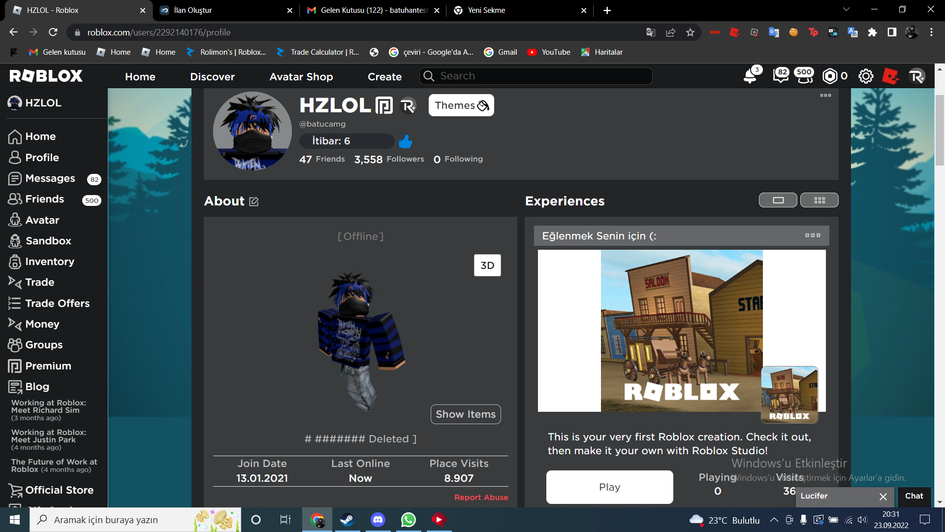 Roblox hesap adı: batucamgShindo life denen oyunda TR 2Ve nerdeyse tüm oyunlarda gammepass mevcutturHesabı ucuza satıyorum 160k robux totali vardır toplamSatın alıcağınız zaman sohbet açınızBlox flip 10k robux totali toplam bloxflip de total warged ımız 260k