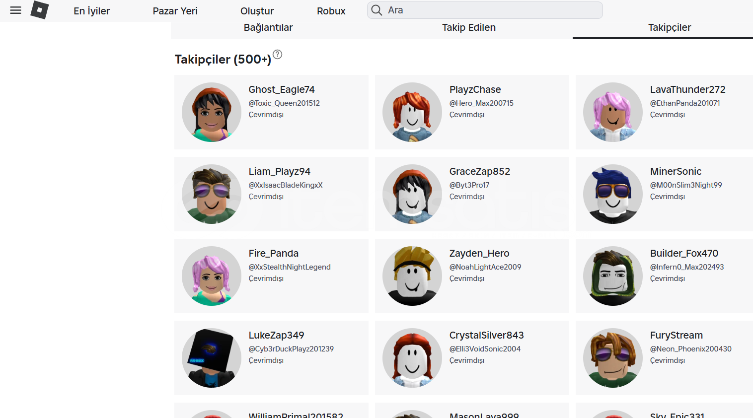 Roblox 250 bot takipçi satıştadır.Hafta içi 17.00 18.00 aktif olurum.Hafta sonu kafama göre aktif olurumManuel olara...